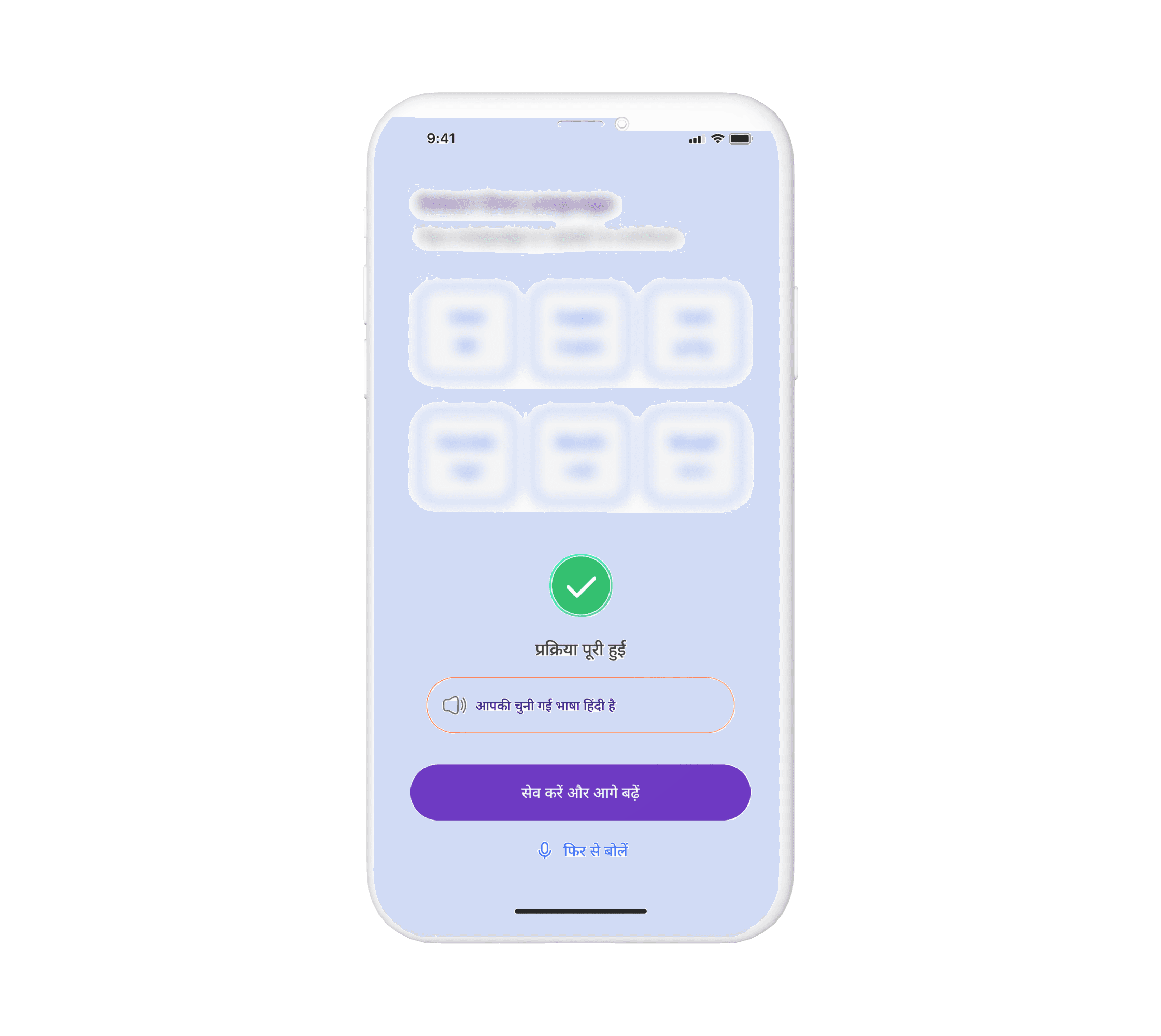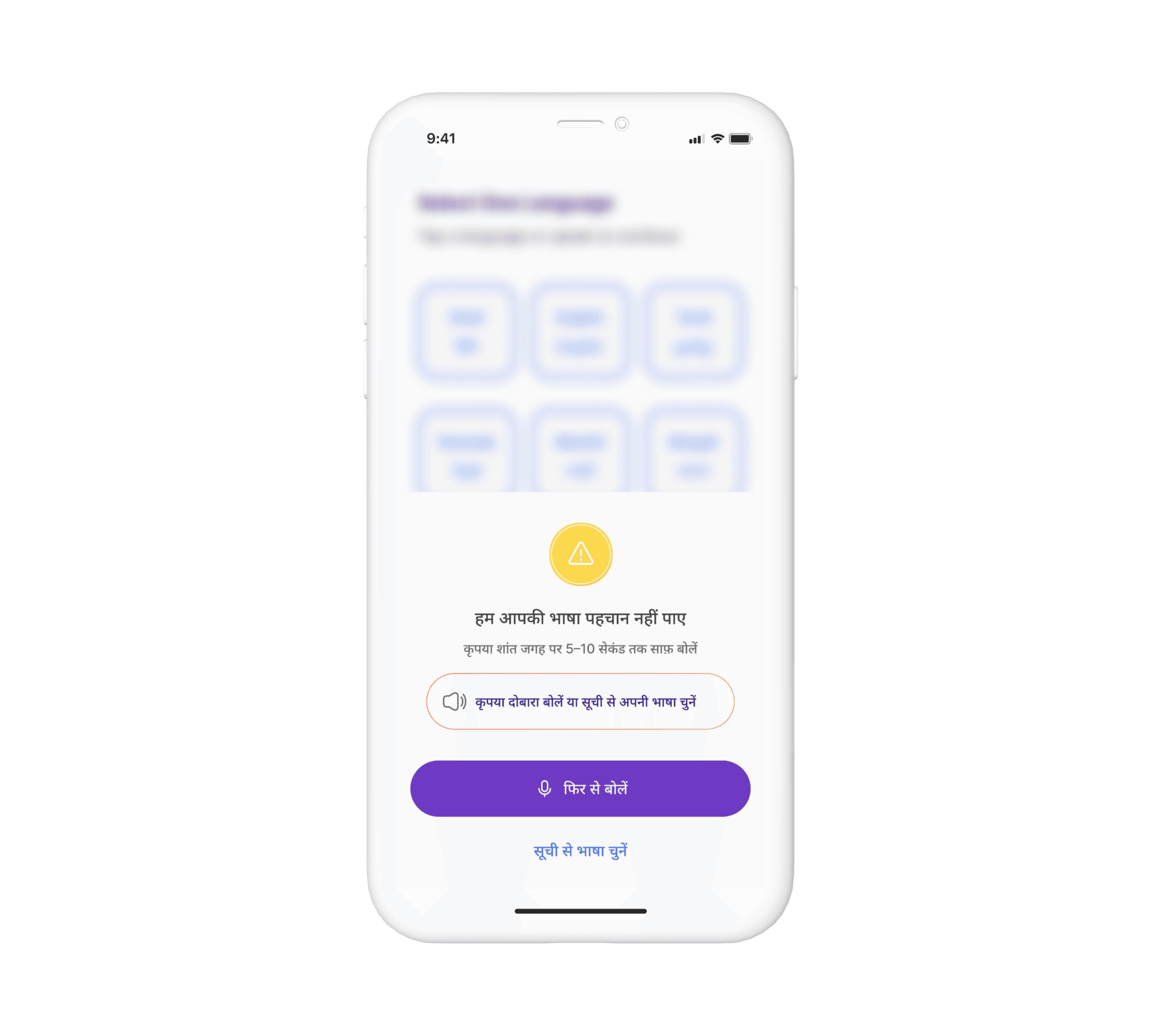 Confirm your detected language or speak again.