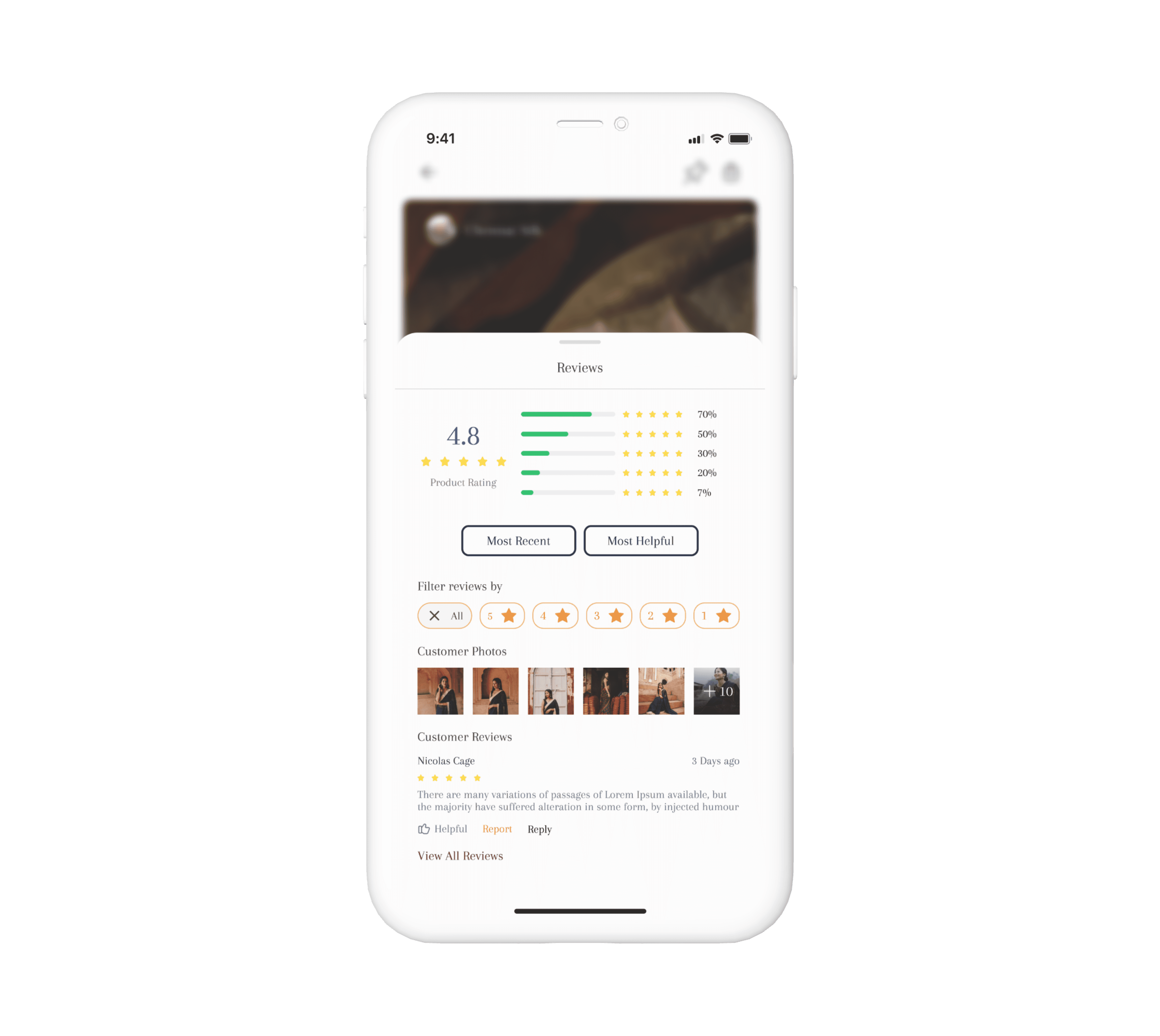 A read-only reviews section for genuine feedback, where customer can sort reviews with most recent, most helpful and number of stars for more reliability.
